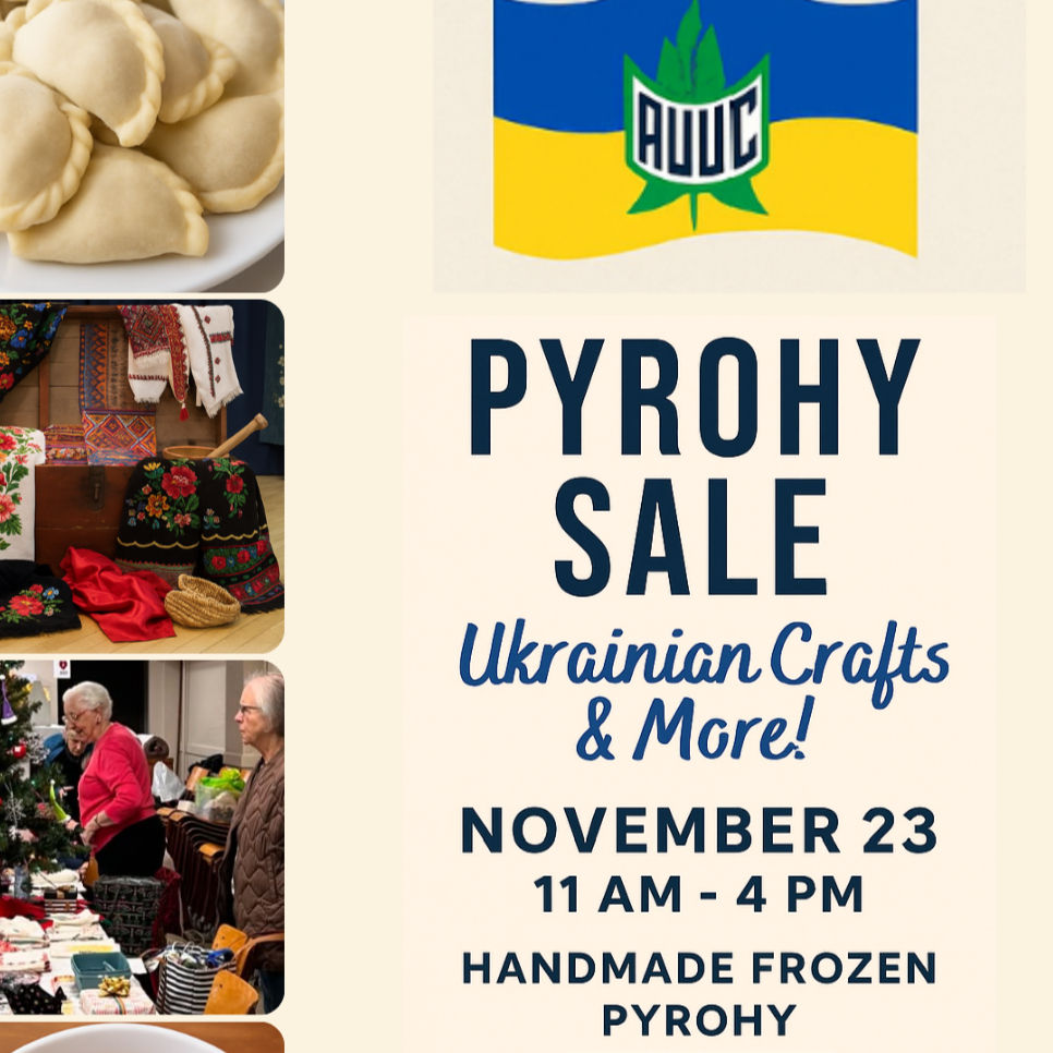 It’s that season again! Time to stock up your freezer with delicious homemade perogies and borshch, and start your holiday shopping for that unique gift for that special someone. Taking place during the Eastside Cutlture Crawl, make some time to come down to the Ukrainian Hall and stop in for shopping and lunch by Kalyna Catering at the cafe, take home some delicious baking, canning, and fresh food, and browse our crafters’ unique offerings to find that special item you didn’t know you needed. Children can have fun too, at our children’s art area hosted by Free Form Studio. We hope to see you between 11 and 4 on Sunday November 23rd!